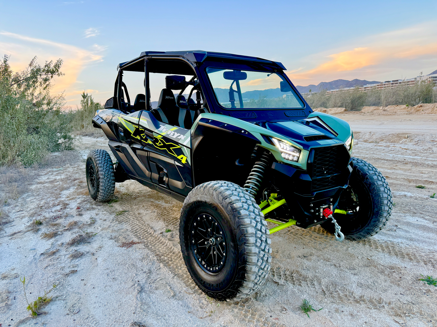 Amazing Kawasaki KRX 1000! Smooth long travel suspension, great power band, upgraded 15" bead lock wheels, 32" all terrain tires, full glass windshield, winch, mirrors.